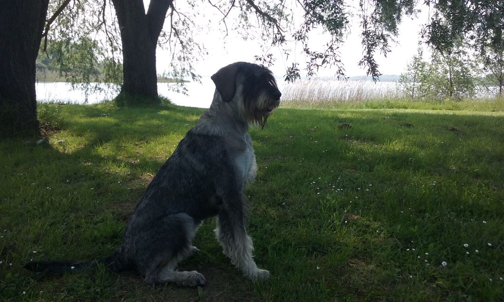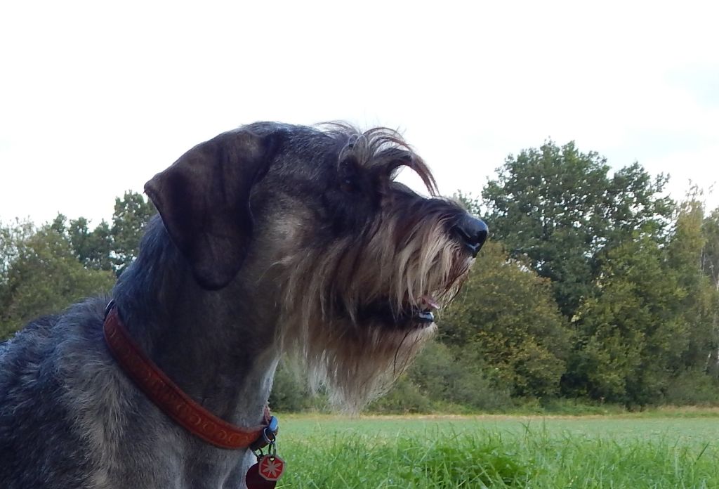 Chienne très équilibrée et amicale, proche de l'humain, mais à fort caractère de Schnauz !