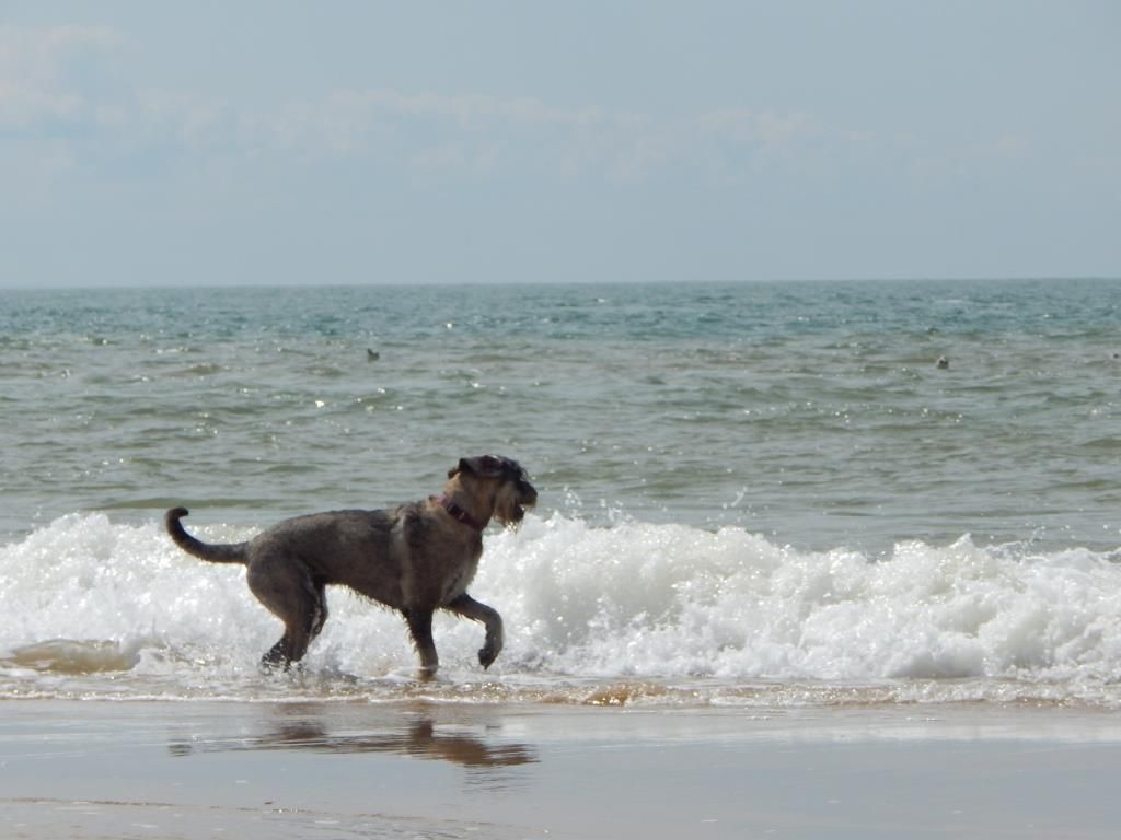 DCC. TB proportions et expression. Exc oeil bien pigmenté. oreilles bien portées. Bon parallélisme. Corps : bonnes proportions, dos tendu. tb croupe. Poitrine déjà bien dessinée, doit s'éclater. TB ossature. TB aplombs. TB angulations. TB texture de poil. Exc mouvement et allure.